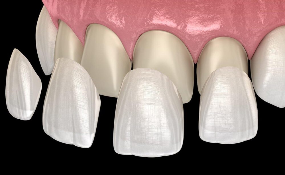 Dental veneers are thin, custom-made shells placed on the front surface of teeth to improve their appearance. Usually made of porcelain or composite resin, they help fix problems like discoloration, chips, gaps, and slightly misaligned teeth. A small amount of enamel is removed before bonding the veneer, making the procedure permanent. Veneers provide a natural-looking, long-lasting smile but require good oral hygiene and regular dental care.